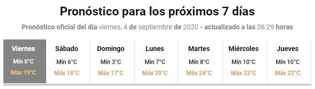 La temperatura máxima será de 19°C, mientras que la mínima caerá hasta los 4°C.