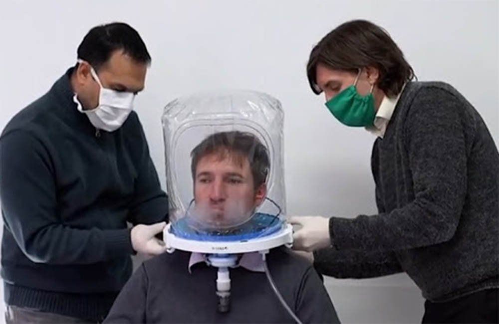 Una empresa de Argentina inventó un casco para la ventilación no invasiva que, de acuerdo con la experiencia internacional, permite evitar entre 30% y 60% de las intubaciones de los pacientes. De este modo, libera el uso de respiradores mecánicos, en medio de la fuerte demanda por la pandemia de coronavirus Covid-19.