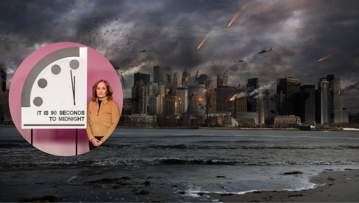 El “Reloj del fin del mundo” es una metáfora creada por el Bulletin of the Atomic Scientists, una organización fundada en 1945 por científicos que habían trabajado en el Proyecto Manhattan. Este reloj es una herramienta simbólica diseñada para ilustrar la proximidad del mundo a una catástrofe global y la llegada del "juicio final"