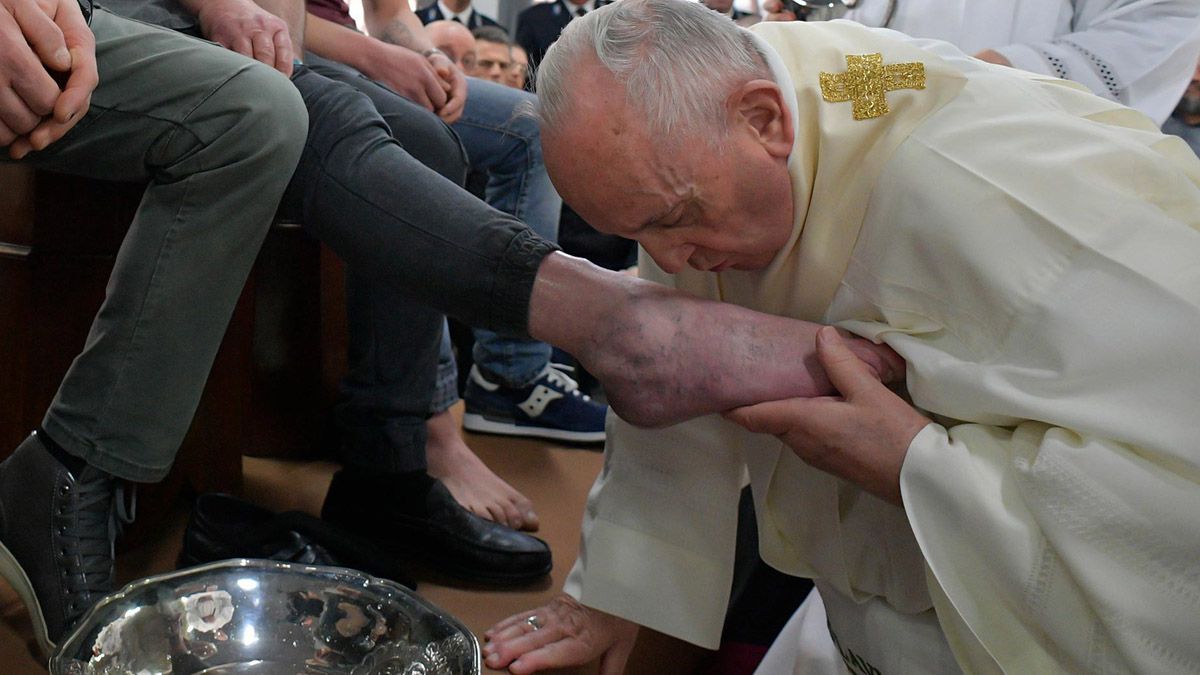 Los Evangelios narran asimismo que durante esta reunión Jesús realizó un lavatorio de pies a todos sus compañeros, un gesto que para la Iglesia es un símbolo de entrega a los demás. No obstante, el momento más relevante de la Última Cena es el que la Iglesia considera como la institución de la Eucaristía, uno de los siete sacramentos para los católicos.