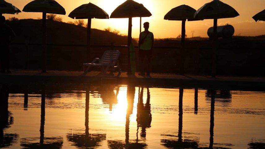 Luján Playa Carrizal cuenta con tres piletas de 24, 22 y 20 metros de diámetro.