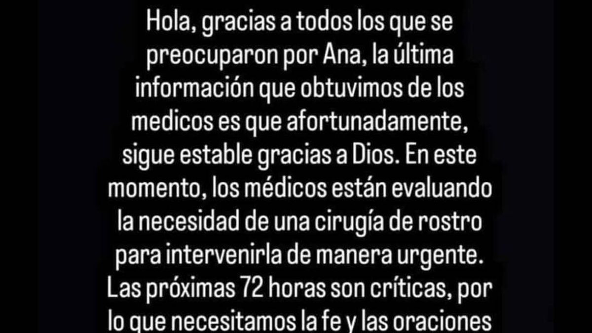 “Princesa, que Dios te bendiga”; “Estamos contigo, Ani”; “Un milagro para esta guerrera”, son algunos de los cientos de mensajes que colmaron las redes sociales en las últimas horas.
