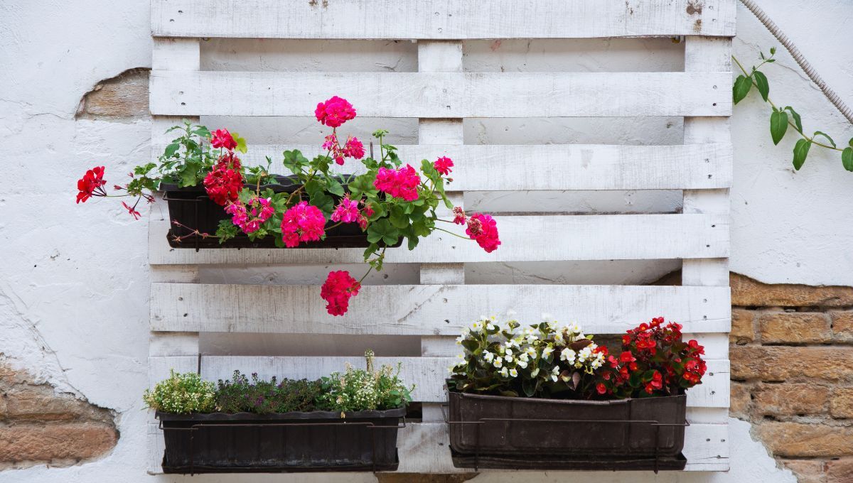 Huertos urbanos o jardines verticales: En balcones o patios pequeños, los palets funcionan como base para cultivar hierbas, flores o vegetales, optimizando el espacio.
