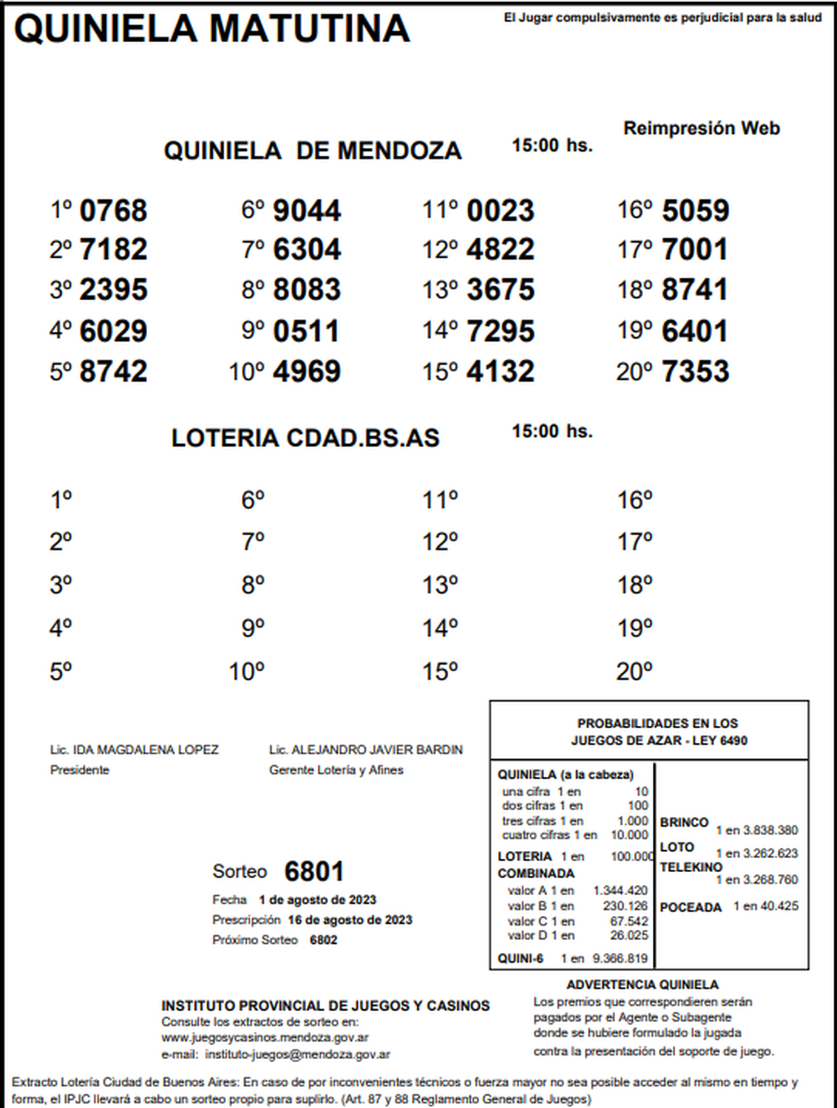 ►TE PUEDE INTERESAR: Resultados de la Quiniela de Mendoza: la Primera del 1 de agosto