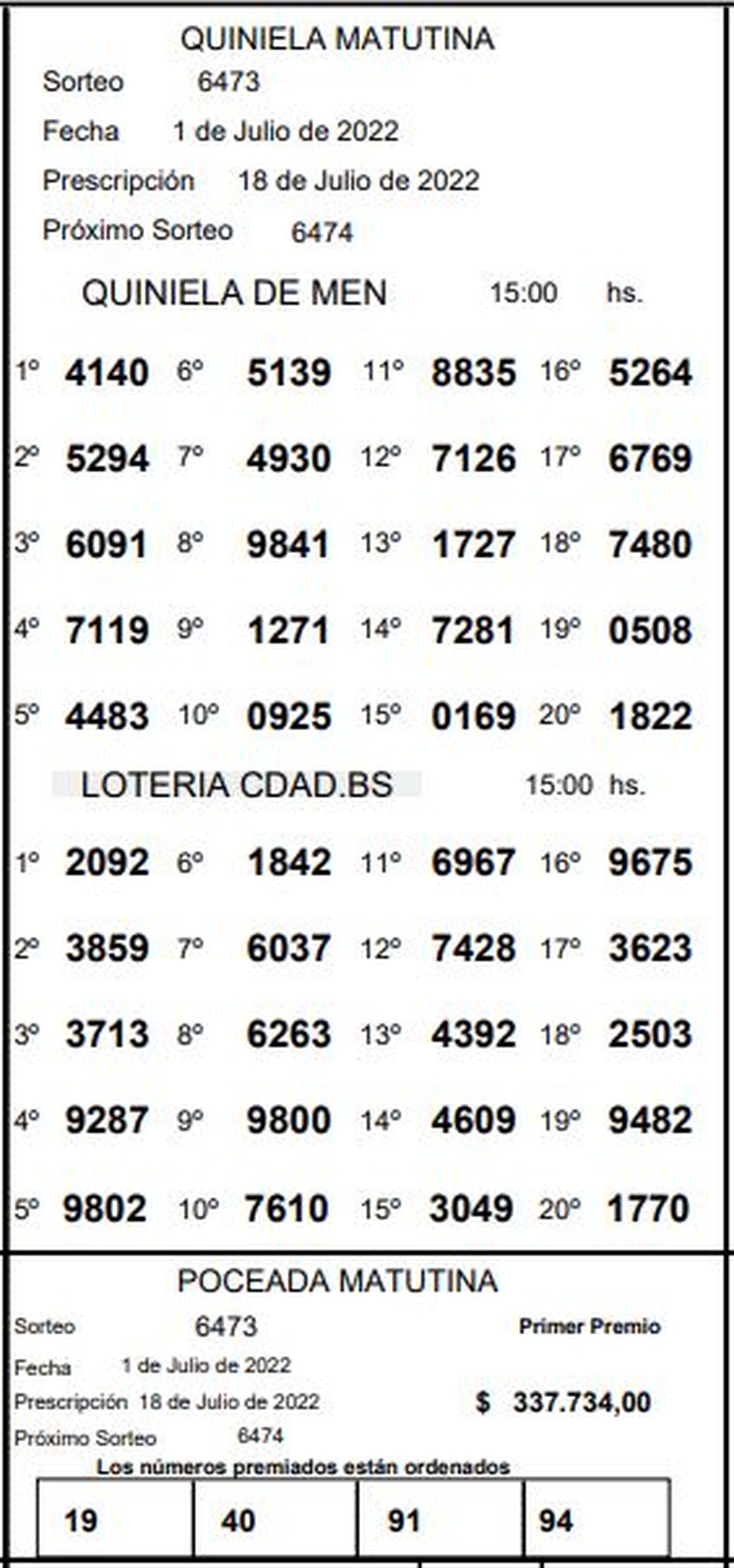 Quiniela de Mendoza: resultados de la Matutina de hoy, 1 julio de 2022