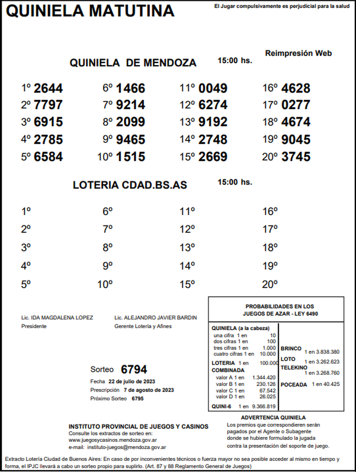 ►TE PUEDE INTERESAR: Resultados de la Quiniela de Mendoza: La Previa del 22 de julio