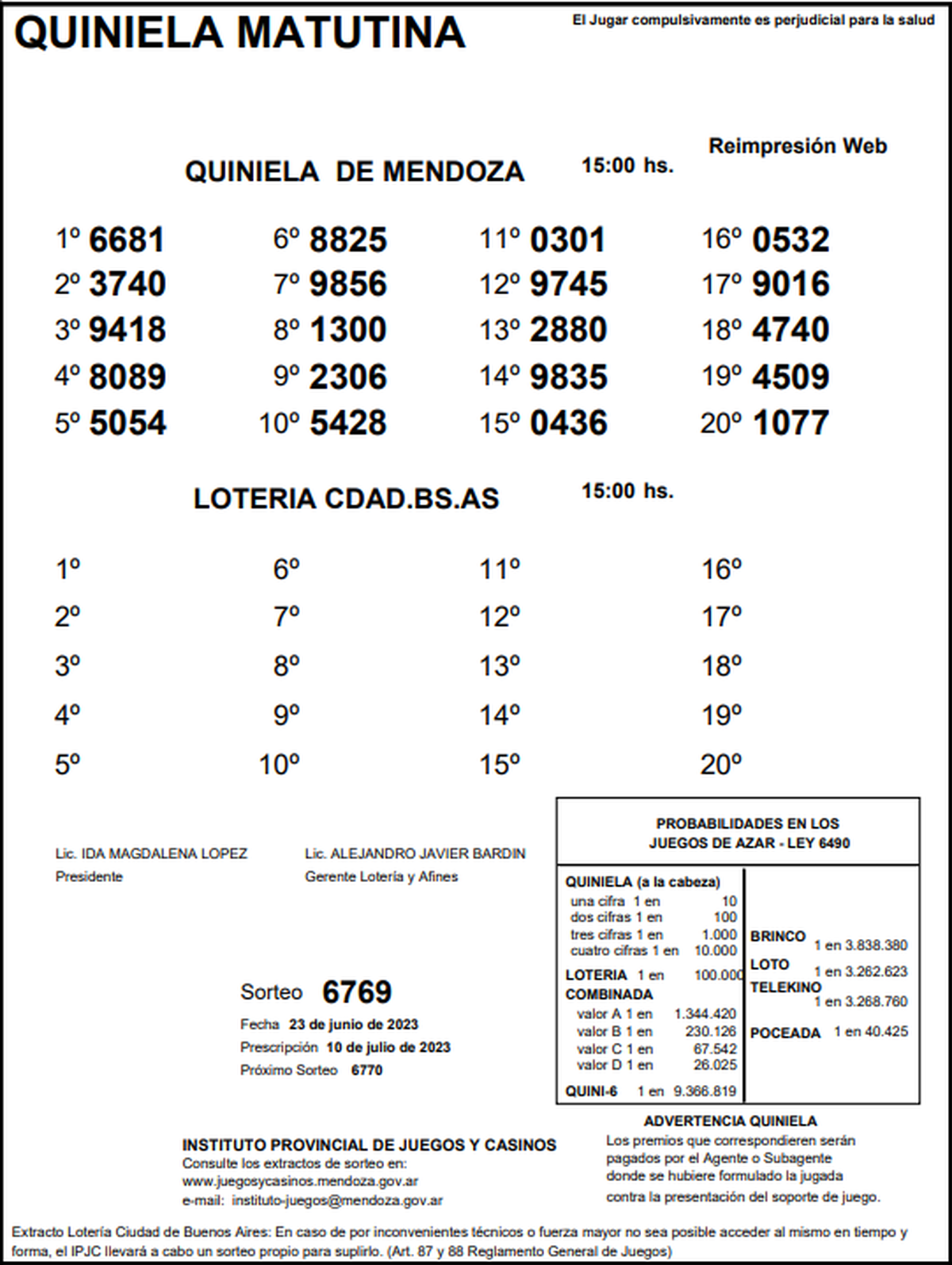 ►TE PUEDE INTERESAR: Resultados de la Quiniela de Mendoza: La Previa del 23 de junio