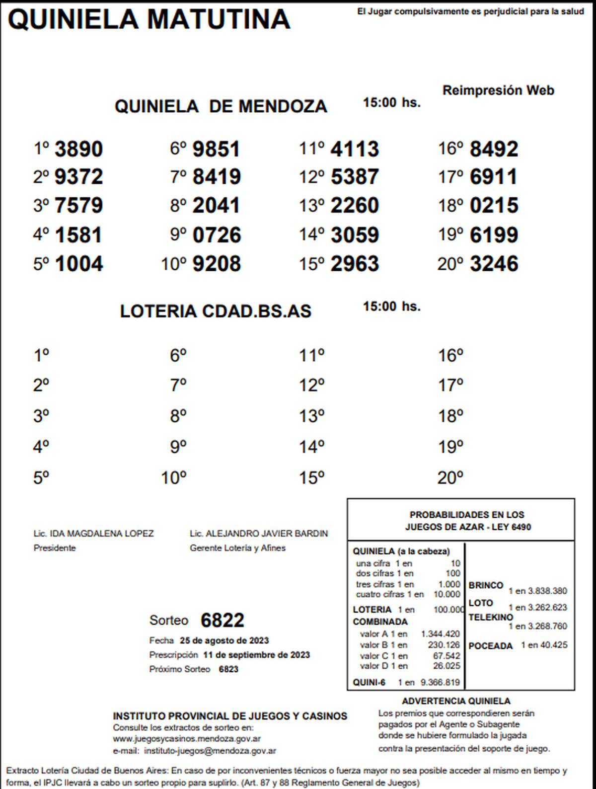 ►TE PUEDE INTERESAR: Resultados de la Quiniela de Mendoza: la Primera del 25 de agosto