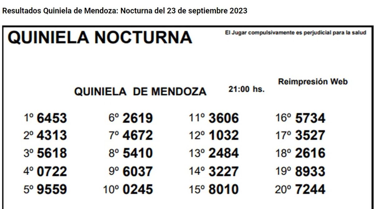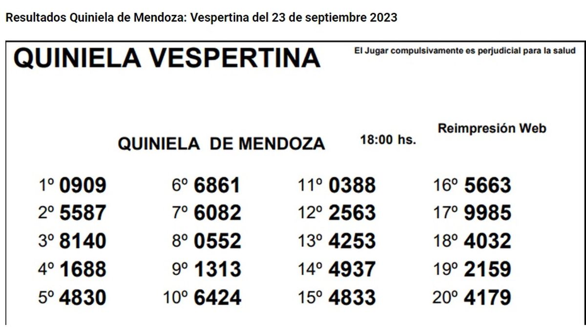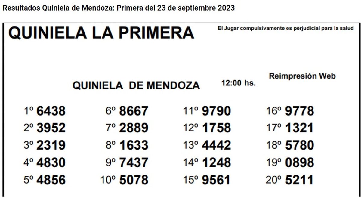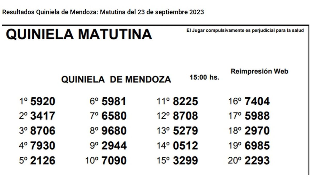 ►TE PUEDE INTERESAR: Resultados de la Quiniela de Mendoza: Primera 25 de septiembre