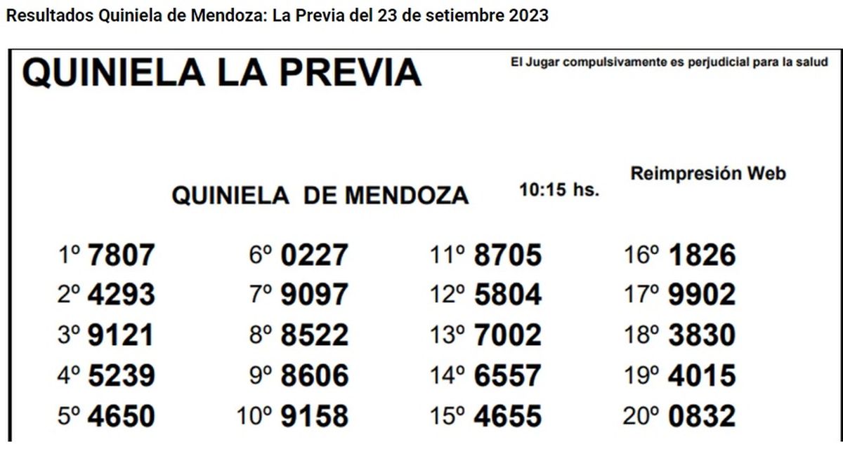 ►TE PUEDE INTERESAR: Resultados de la Quiniela de Mendoza: La Previa 25 de septiembre