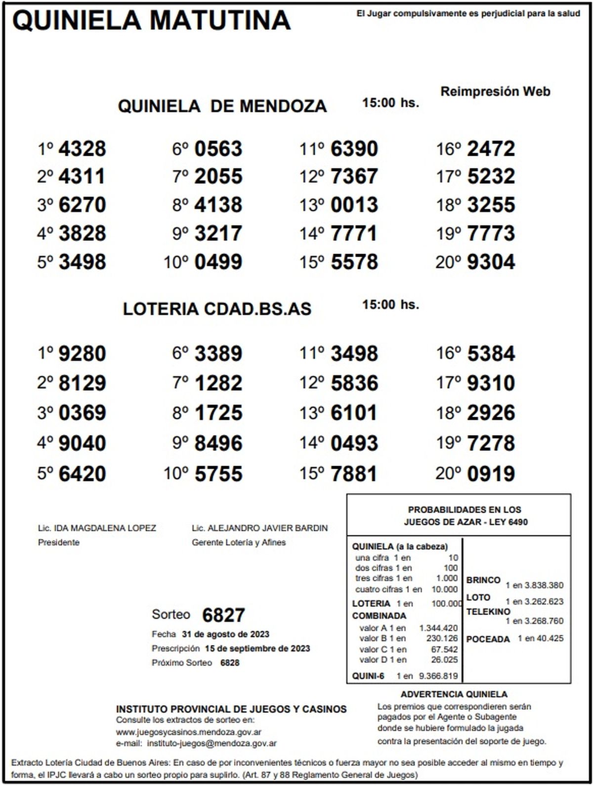 Quiniela de Mendoza: resultados de la Matutina de hoy, 31 de agosto de 2023