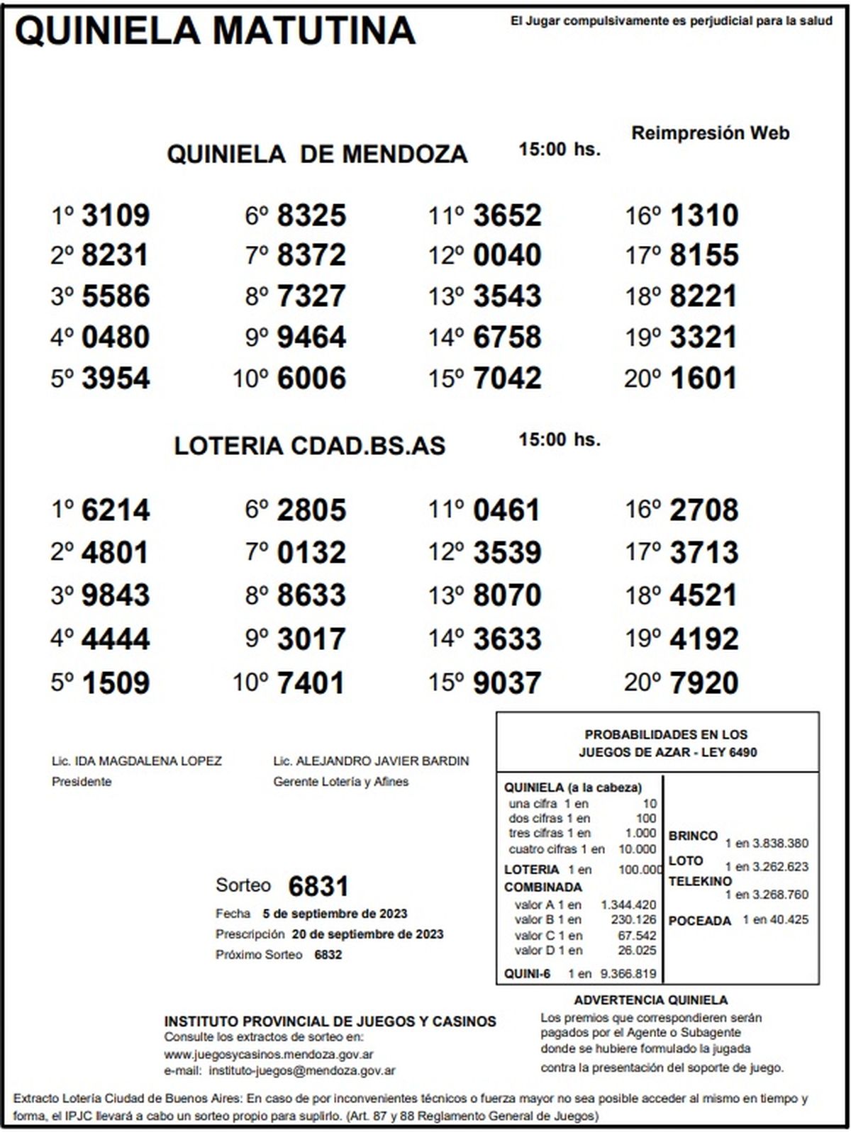 ►TE PUEDE INTERESAR: Resultados de la Quiniela de Mendoza: La Primera 5 de septiembre