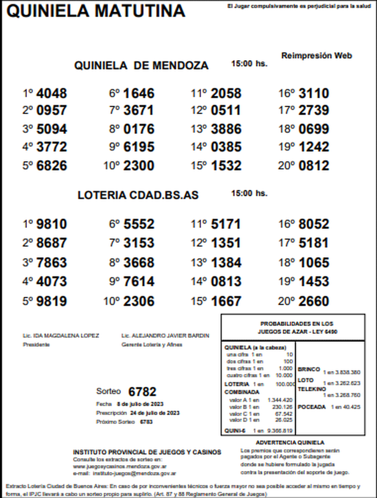 ►TE PUEDE INTERESAR: Resultados de la Quiniela de Mendoza: La Previa del 6 de julio
