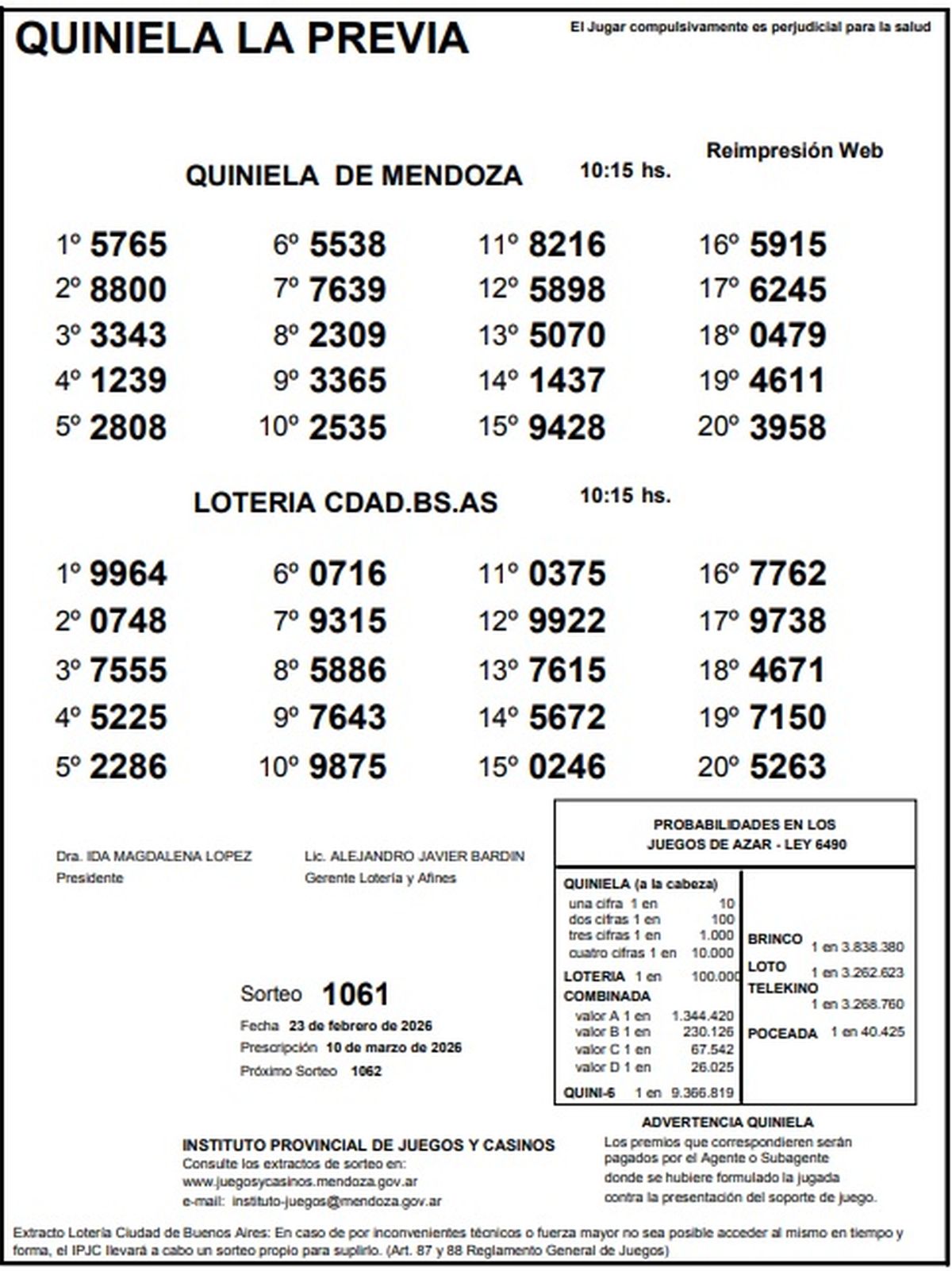 Resultados Quiniela de Mendoza: La Previa del 23 de febrero de 2026