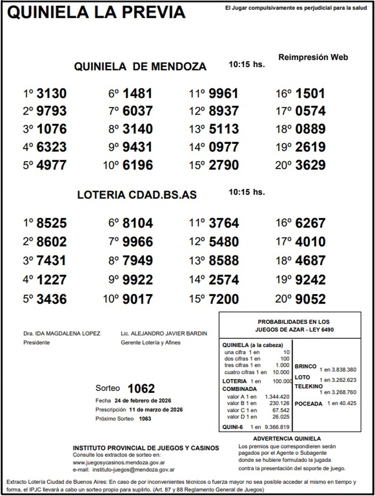 Resultados Quiniela de Mendoza: La Previa del 24 de febrero de 2026