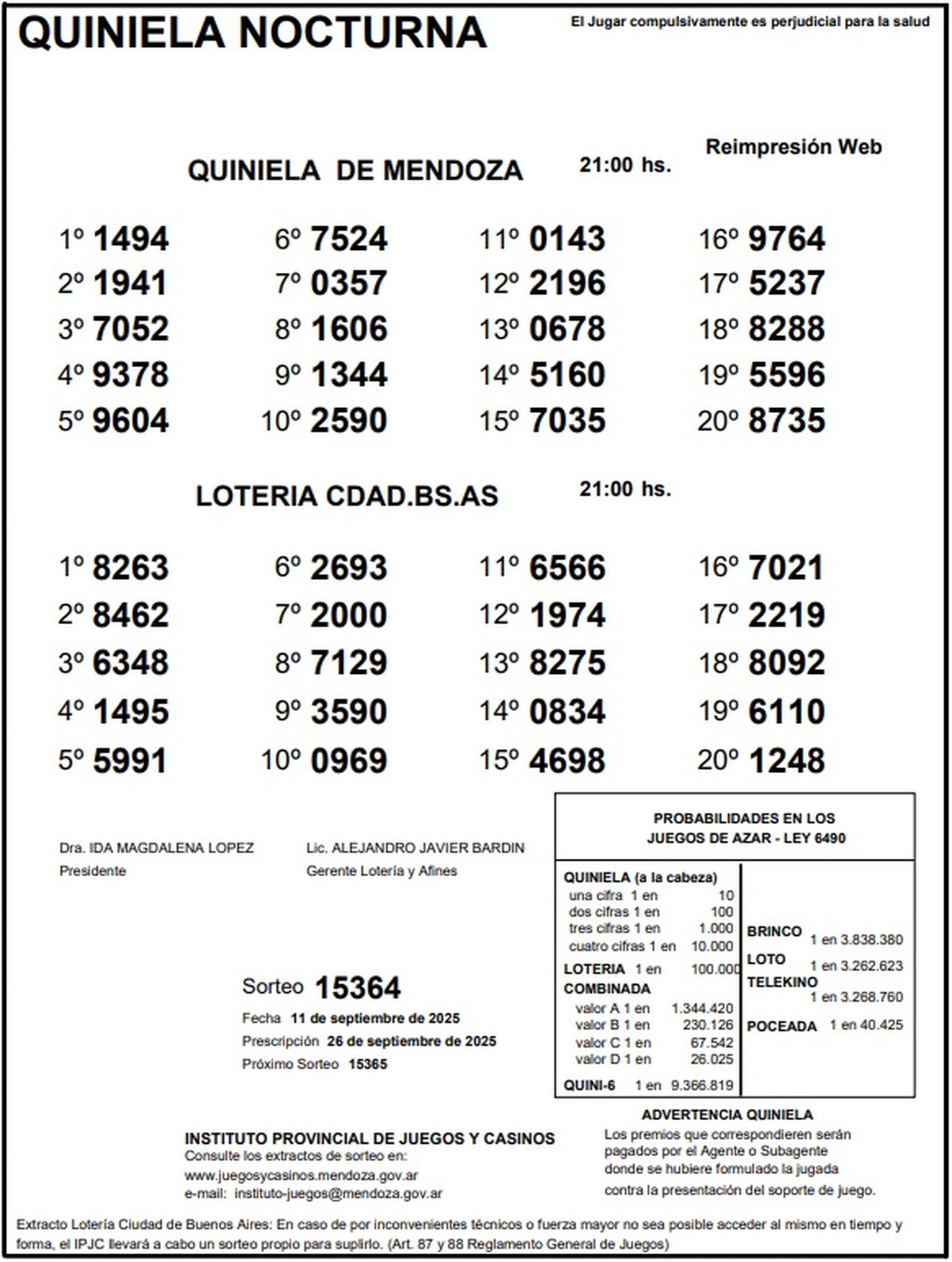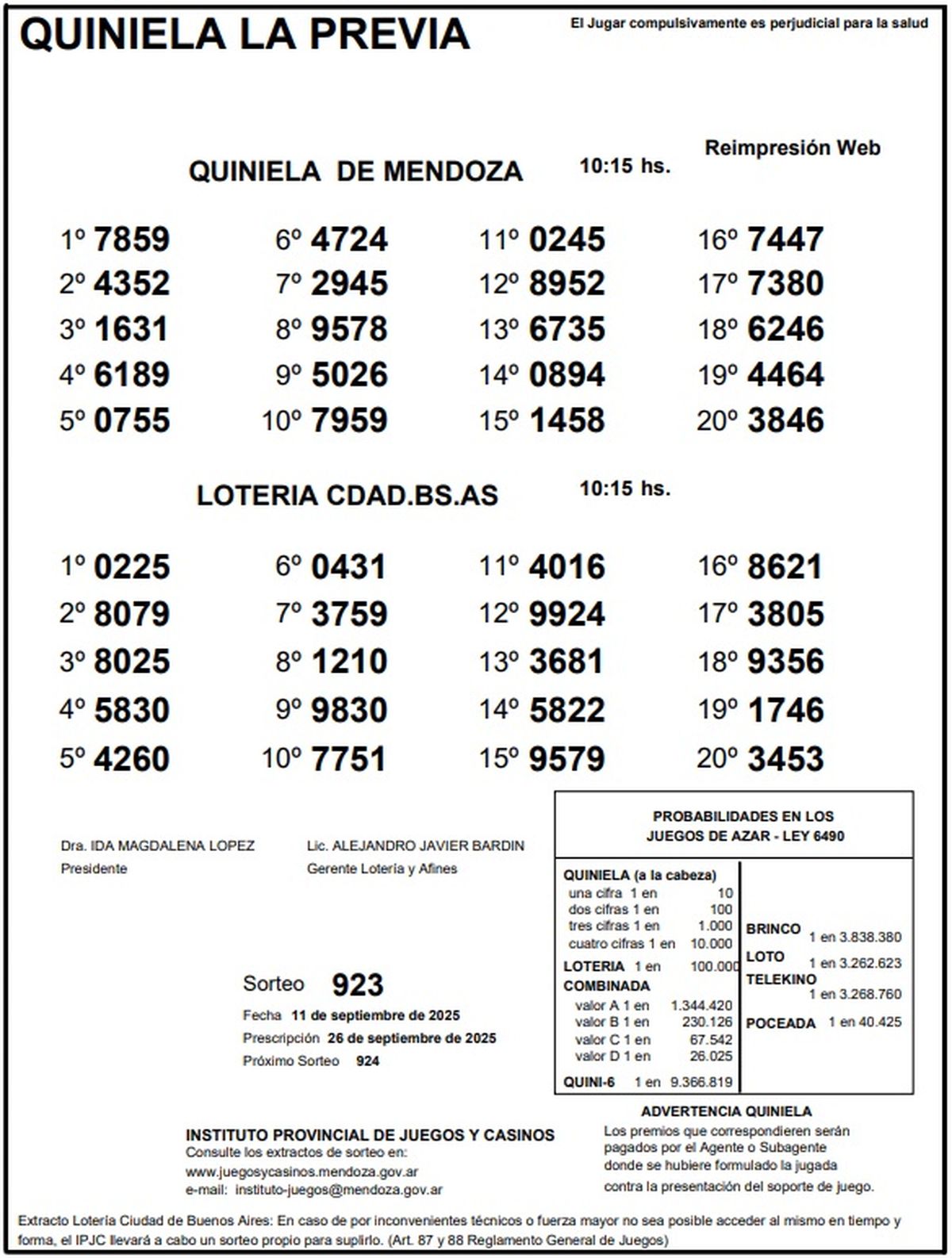 Resultados Quiniela de Mendoza: La Previa del 11 de septiembre de 2025