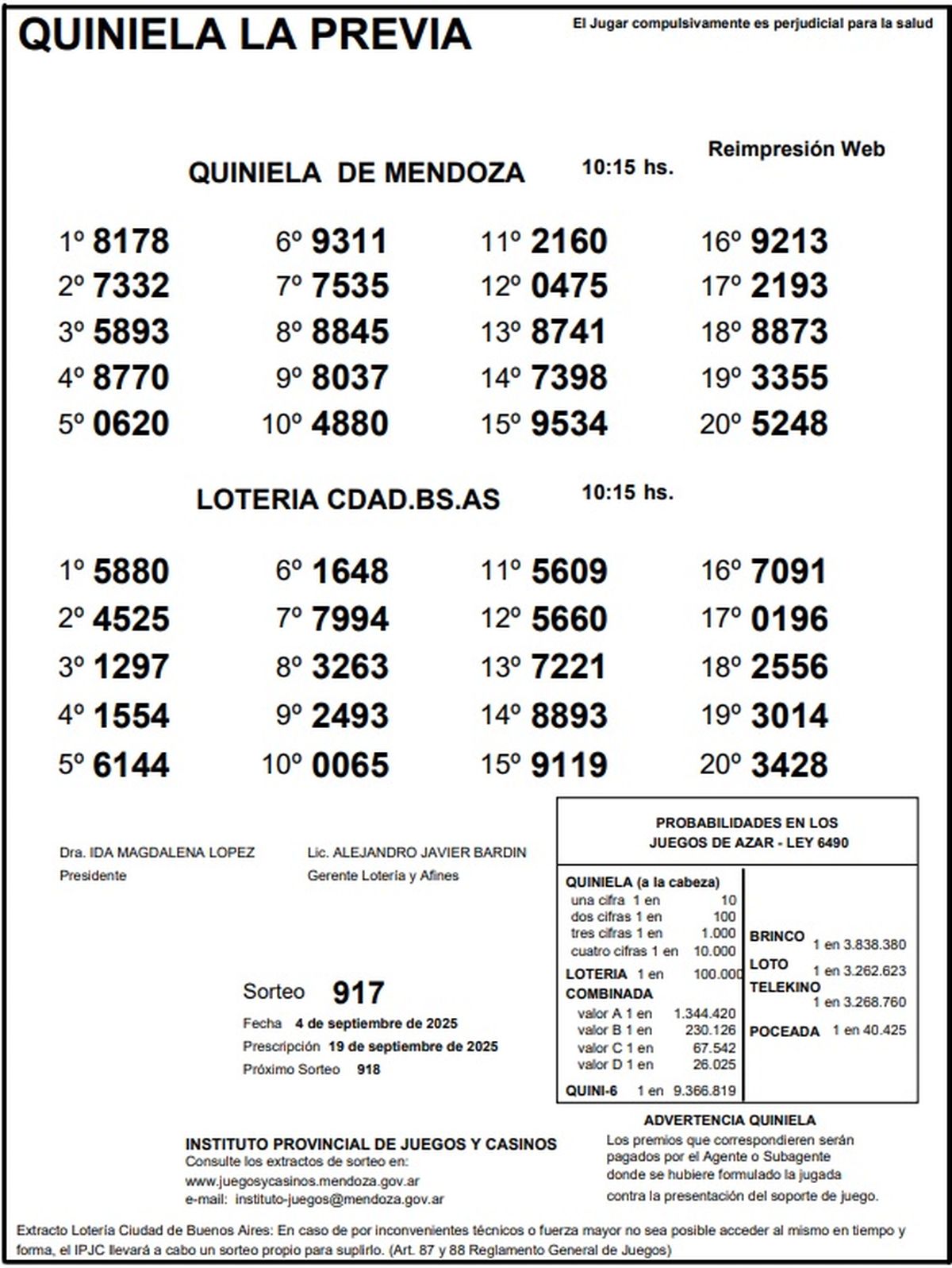 Resultados Quiniela de Mendoza: La Previa del 4 de septiembre de 2025