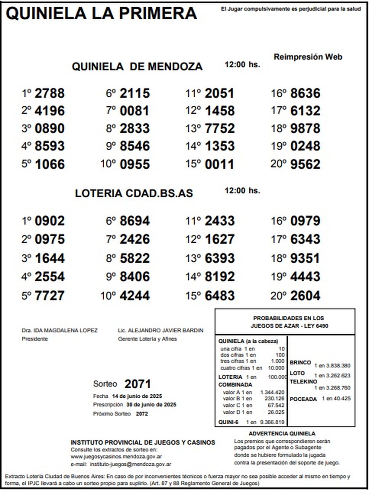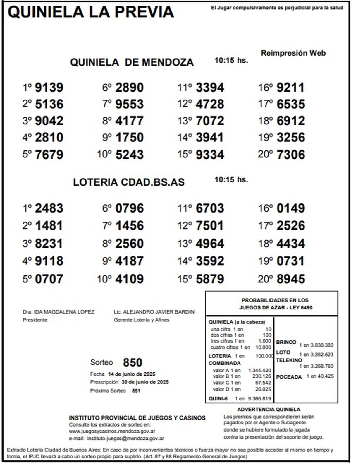 Resultados Quiniela de Mendoza: La Previa del 14 de junio de 2025