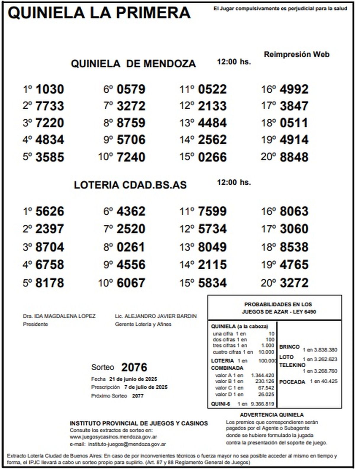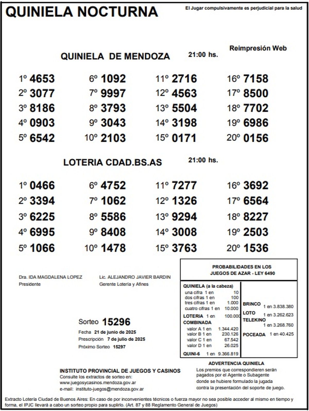 Resultados Quiniela de Mendoza: La Primera del 21 de junio de 2025