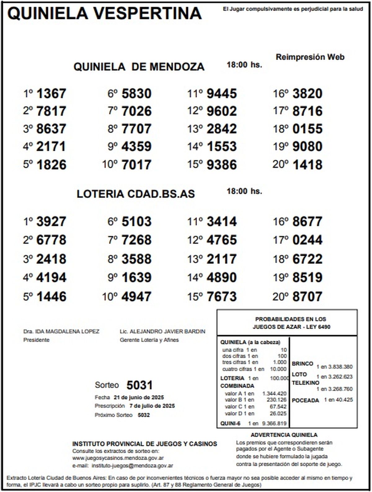 Resultados Quiniela de Mendoza: La Previa del 21 de junio de 2025