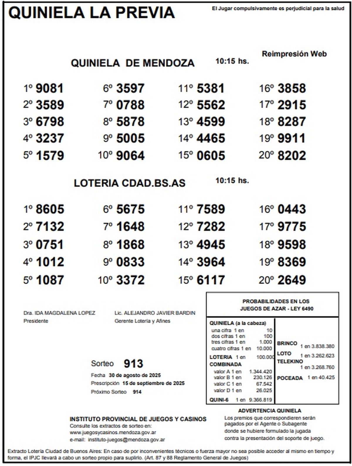 Resultados Quiniela de Mendoza: La Previa del 30 de agosto de 2025