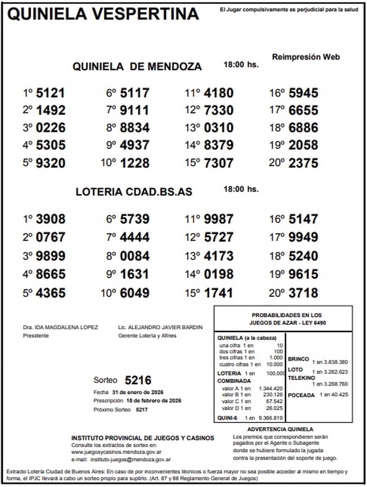 Resultados Quiniela de Mendoza: La Previa del 31 de enero de 2026