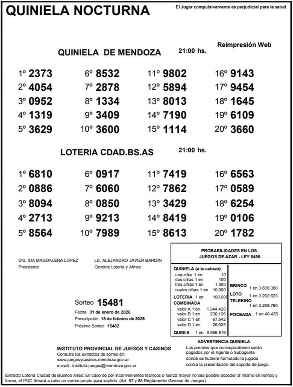 Quiniela de Mendoza: resultados de la Nocturna de este sábado, 31 de enero.
