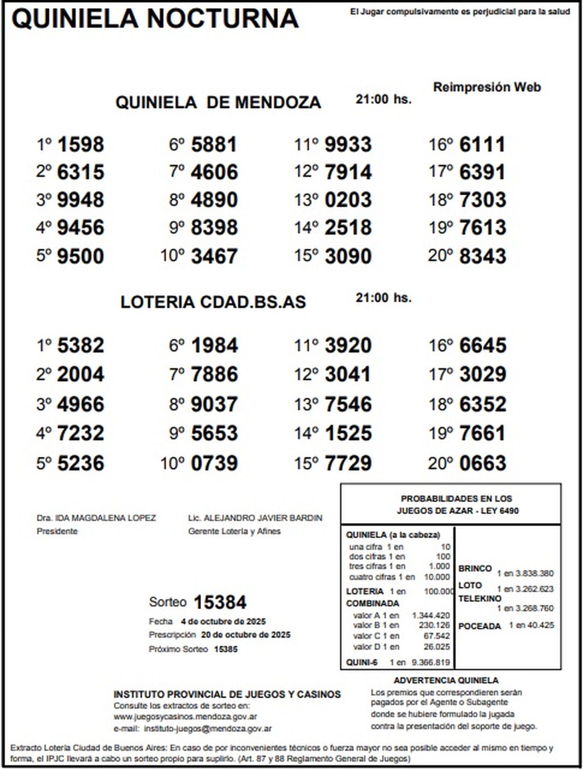 Quiniela de Mendoza: resultados de la Nocturna de este sábado, 4 de octubre de 2025