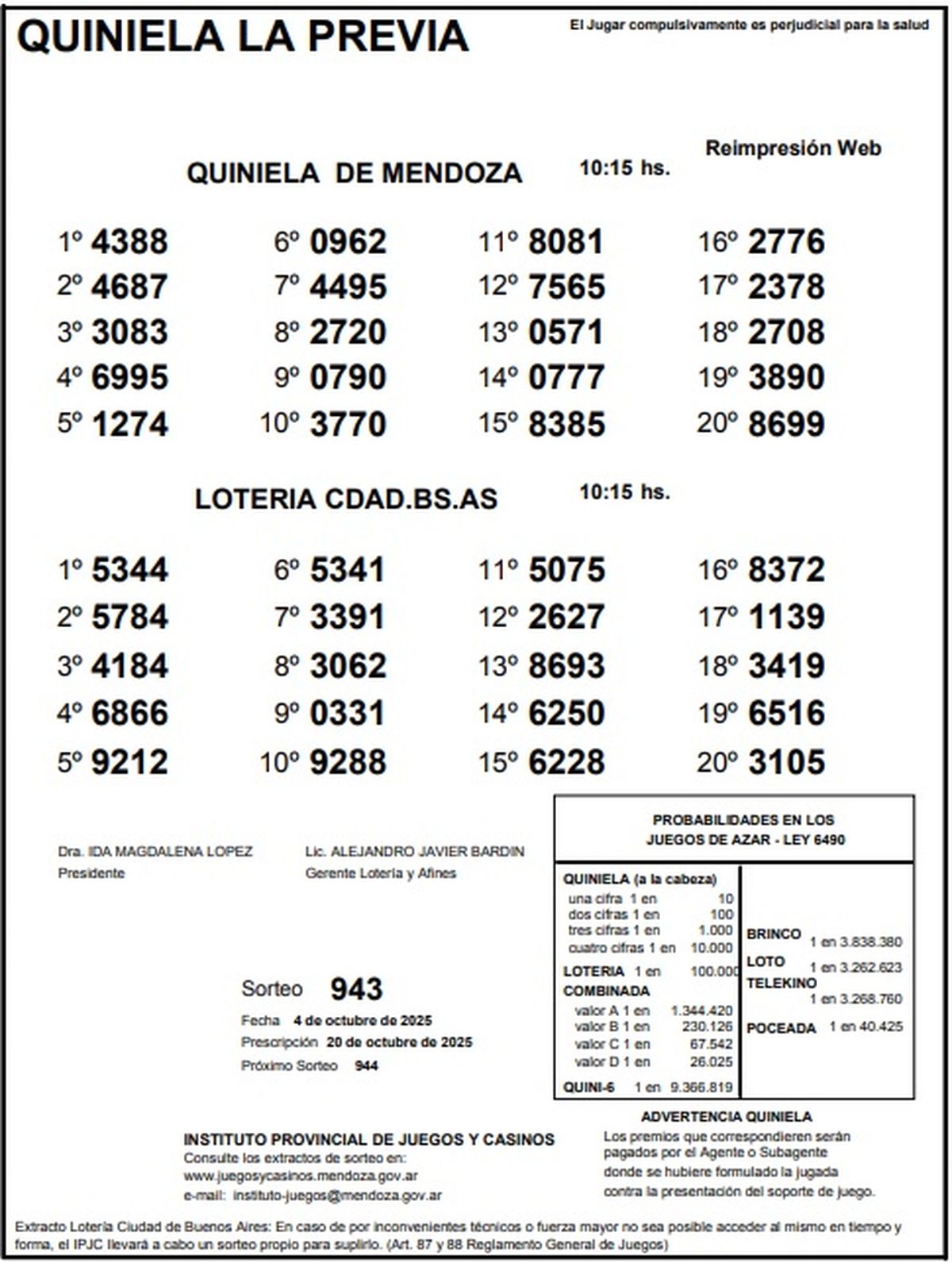 Resultados Quiniela de Mendoza: La Previa del 4 de octubre de 2025