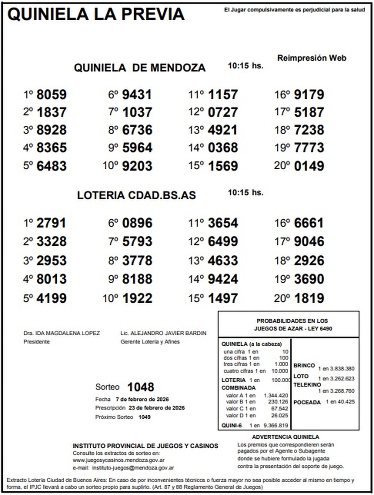 Resultados Quiniela de Mendoza: La Previa del 7 de febrero de 2026