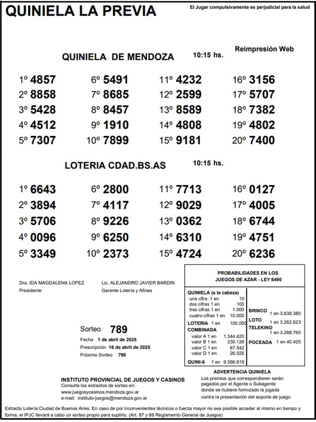 Resultados Quiniela de Mendoza: La Previa del 1 de abril de 2025
