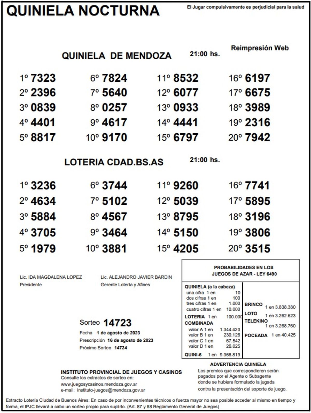Resultados de la Quiniela de Mendoza en su edición La Previa.