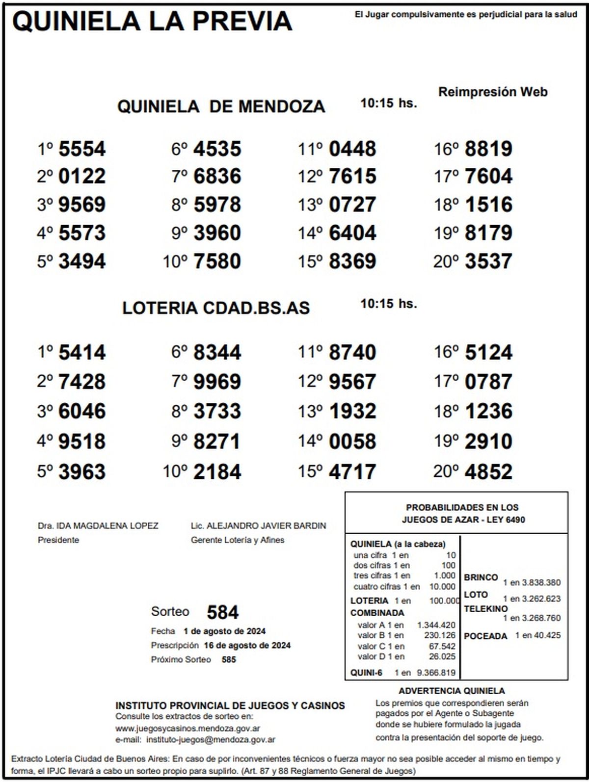 Resultados Quiniela de Mendoza: La Previa del 1 de agosto 2024
