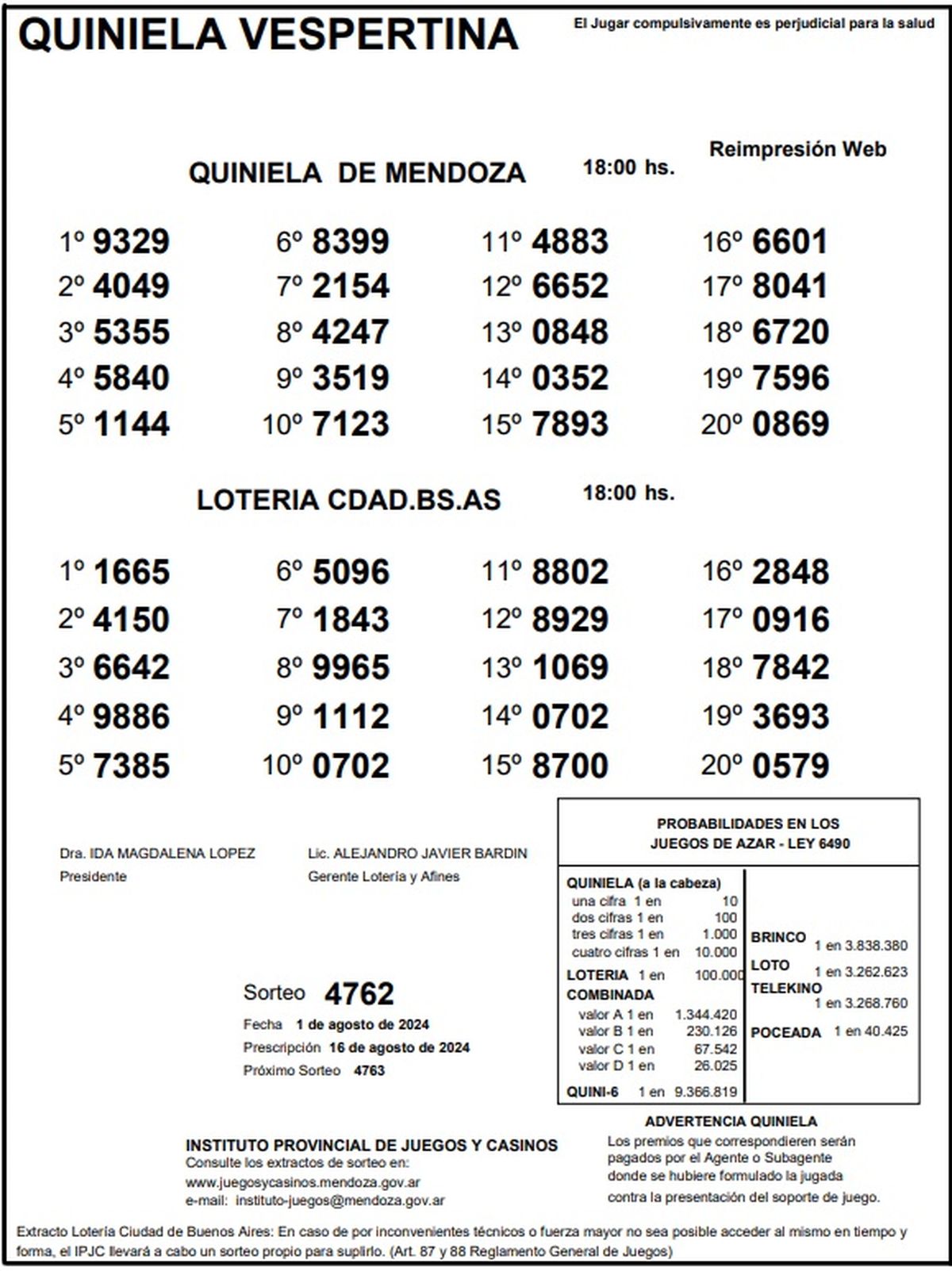 Resultados Quiniela de Mendoza: La Vespertina del 1 de agosto 2024