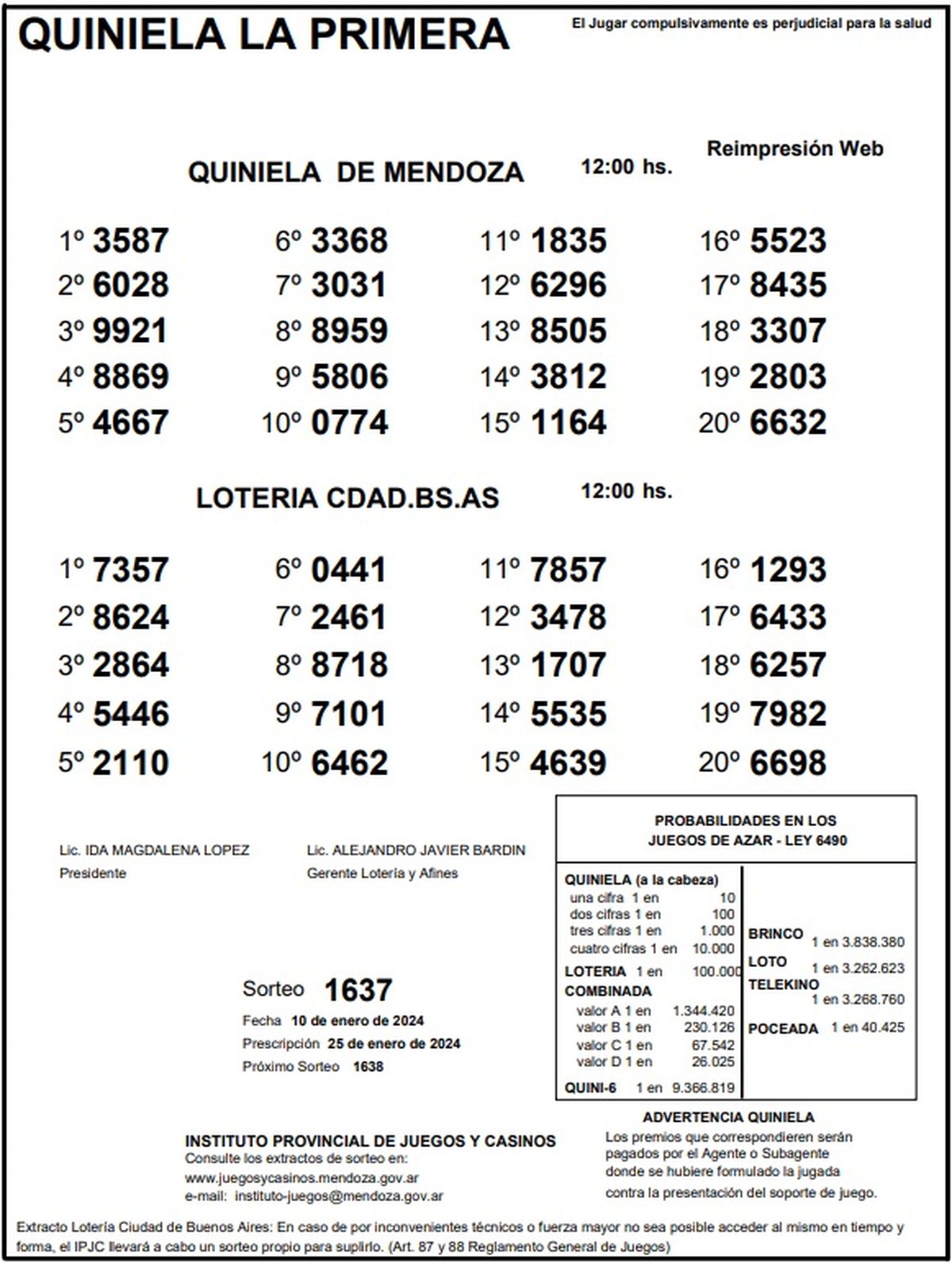 Resultados Quiniela de Mendoza: La Primera del 10 de enero 2024