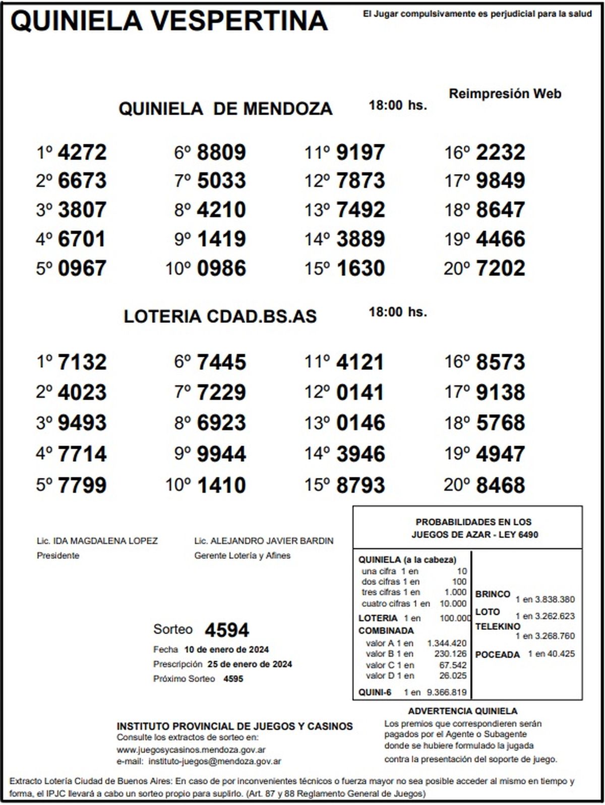 Resultados Quiniela de Mendoza: La Vespertina del 10 de enero 2024