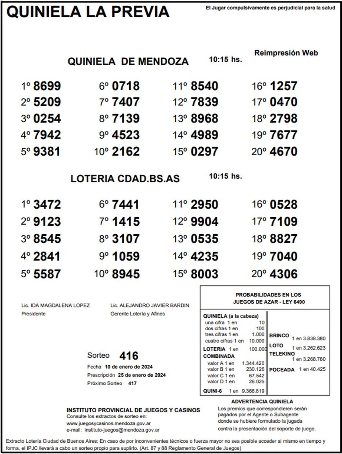 Resultados Quiniela de Mendoza: La Previa del 10 de enero 2024