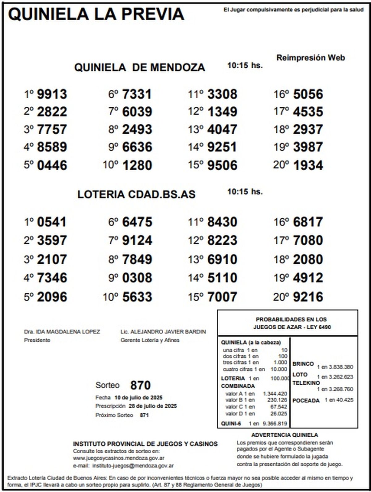 Resultados Quiniela de Mendoza: La Previa del 10 de julio de 2025