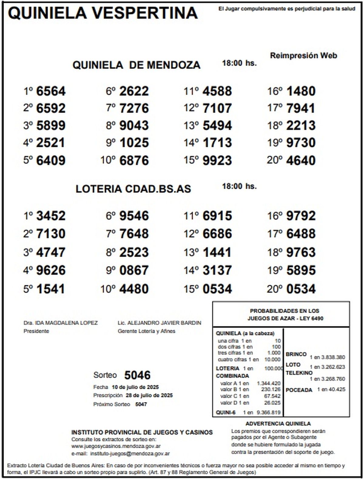 Resultados Quiniela de Mendoza: La Vespertina del 10 de julio de 2025
