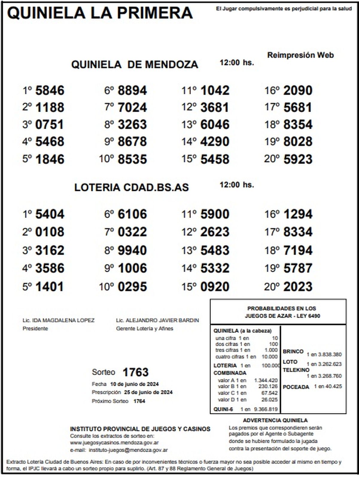 Resultados Quiniela de Mendoza: La Primera del 10 de junio 2024