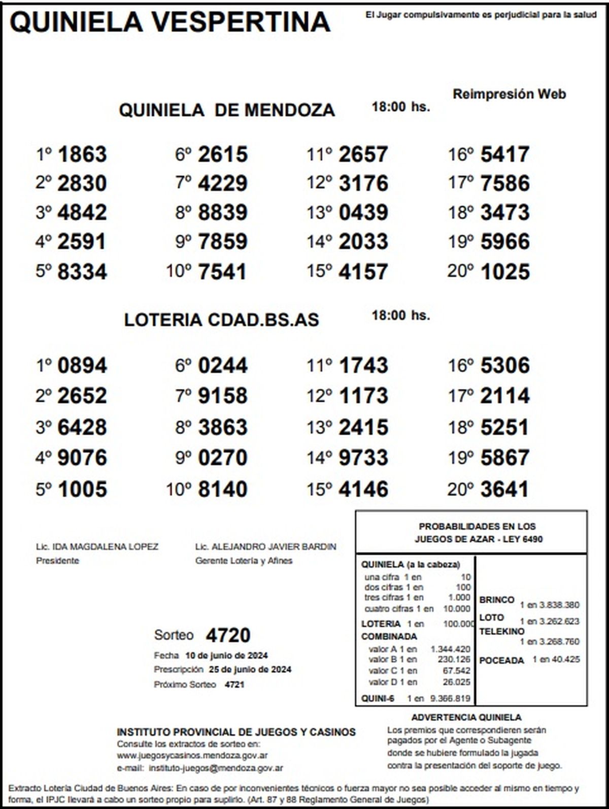 Resultados Quiniela de Mendoza: La Vespertina del 10 de junio 2024