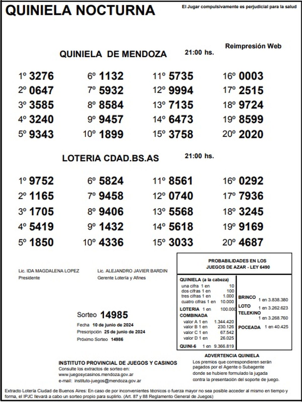 Quiniela de Mendoza: resultados de la Nocturna de hoy, 10 de junio