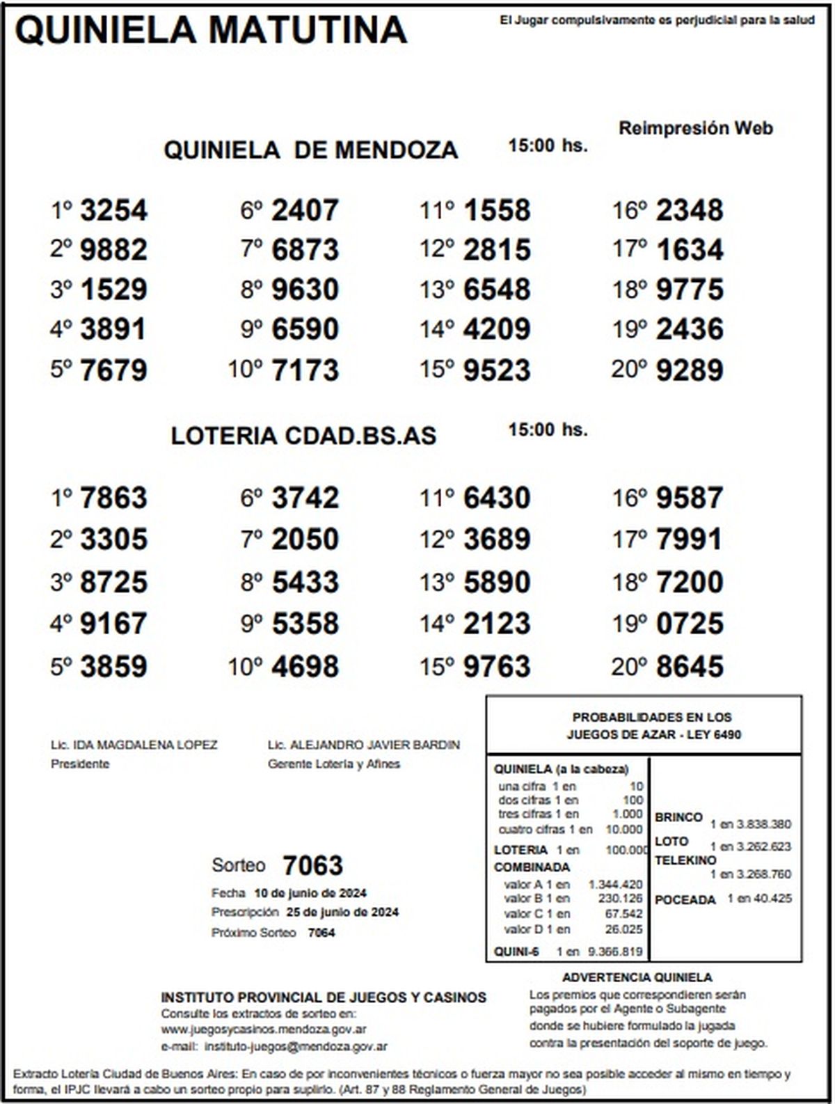 Resultados Quiniela de Mendoza: La Matutina del 10 de junio 2024