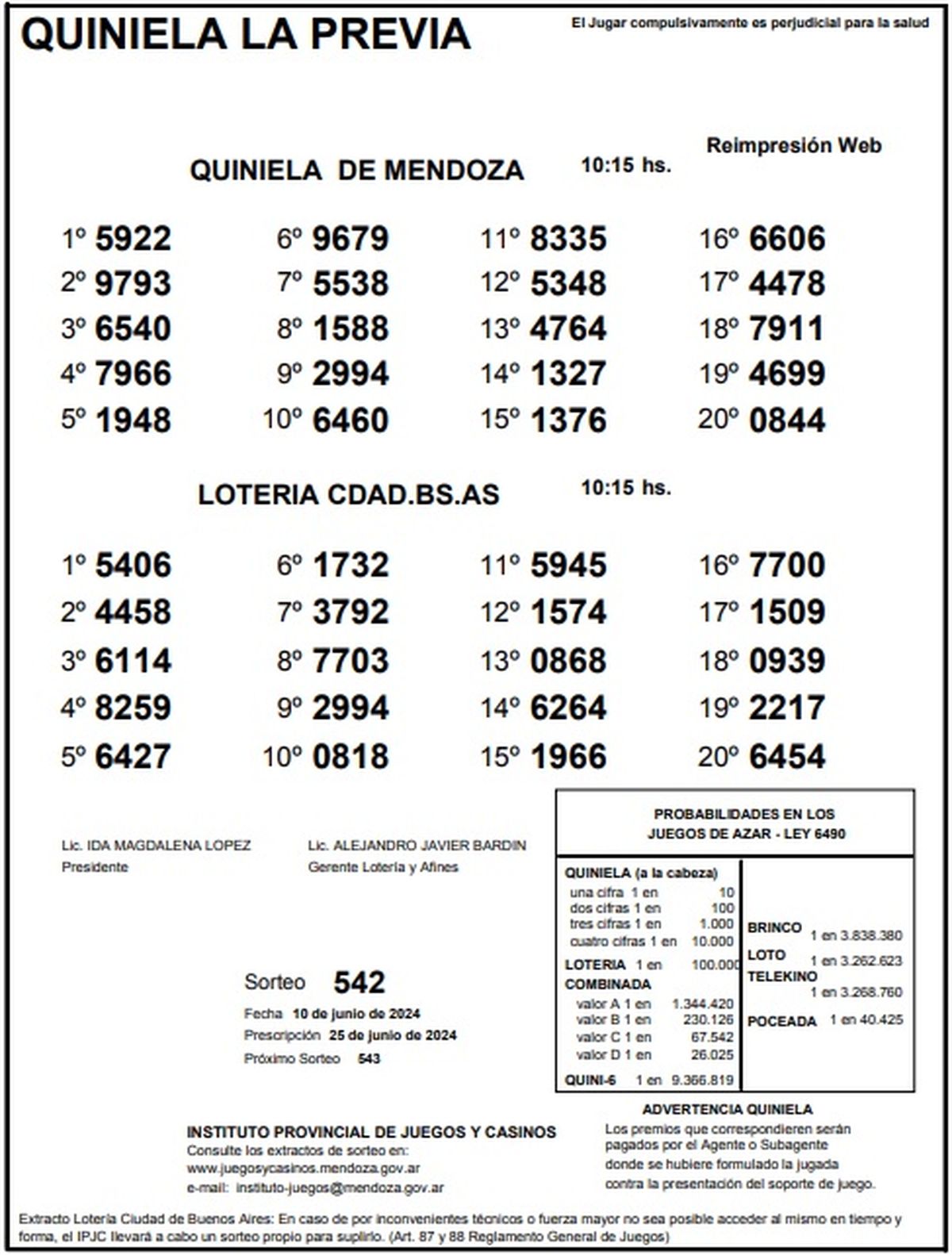 Resultados Quiniela de Mendoza: La Previa del 10 de junio 2024
