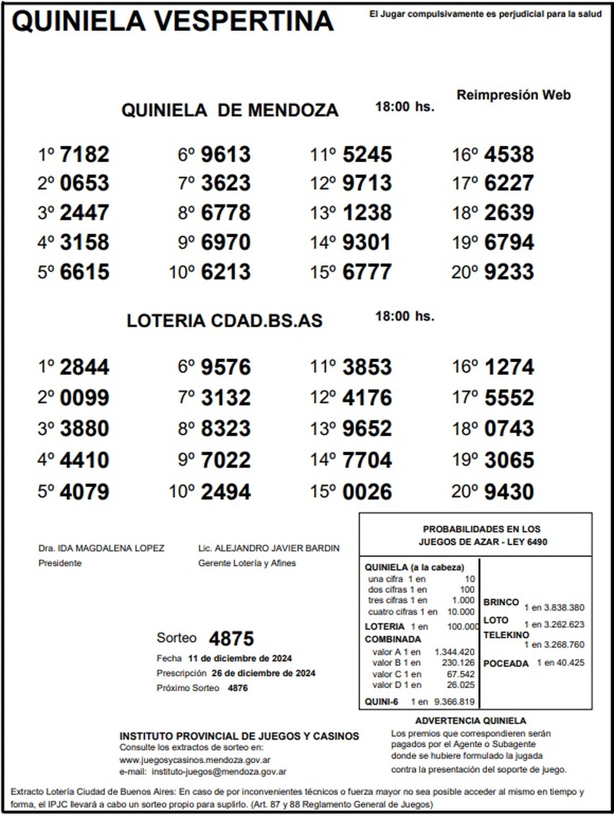 Resultados Quiniela de Mendoza: La Vespertina del 11 de diciembre de 2024