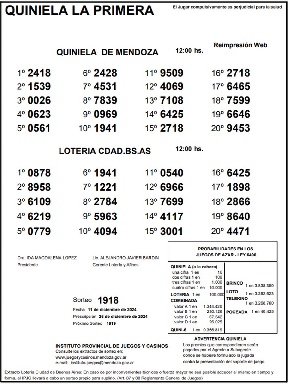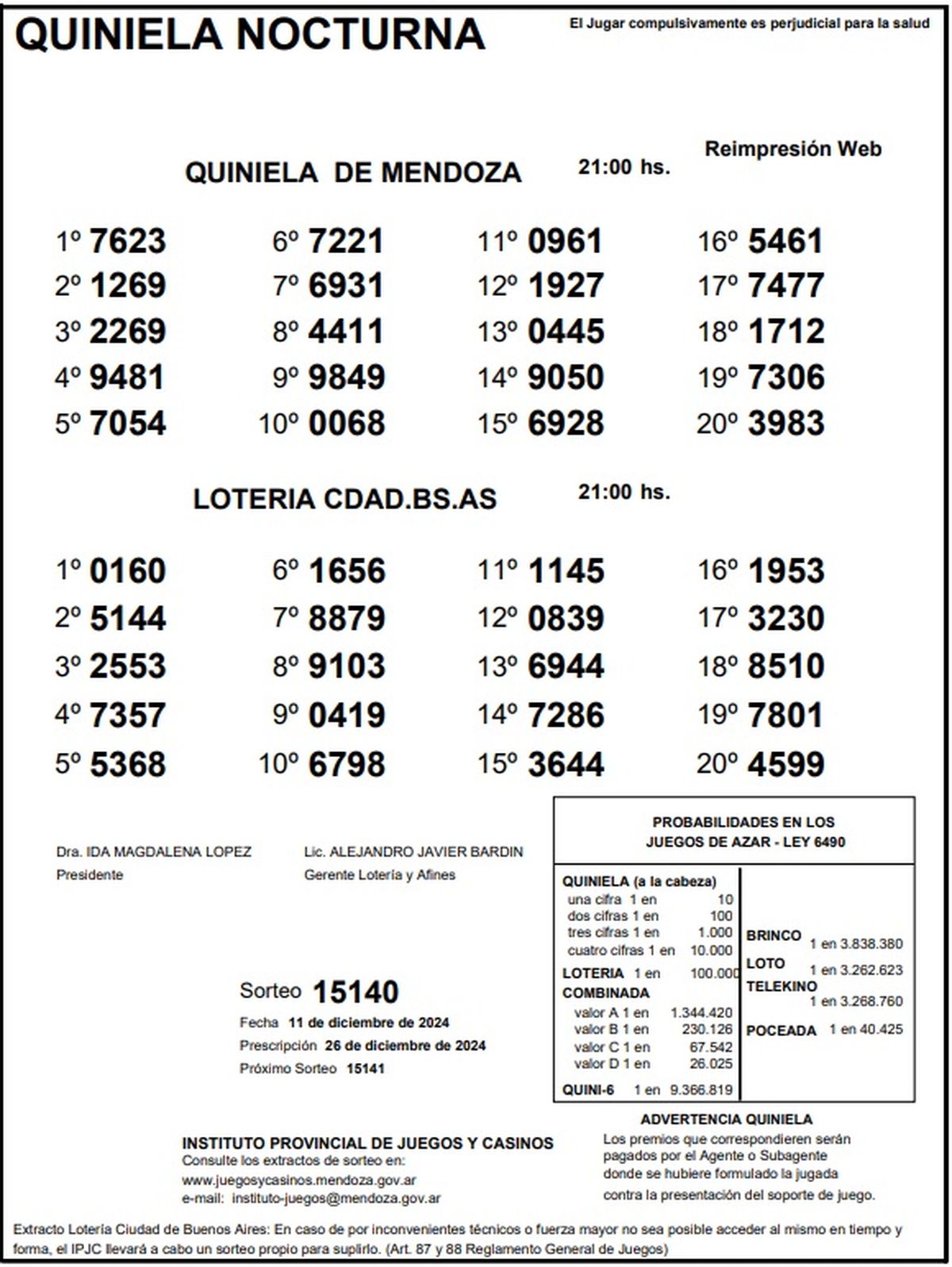 Quiniela de Mendoza: resultados de la Nocturna de hoy, 11 de diciembre de 2024
