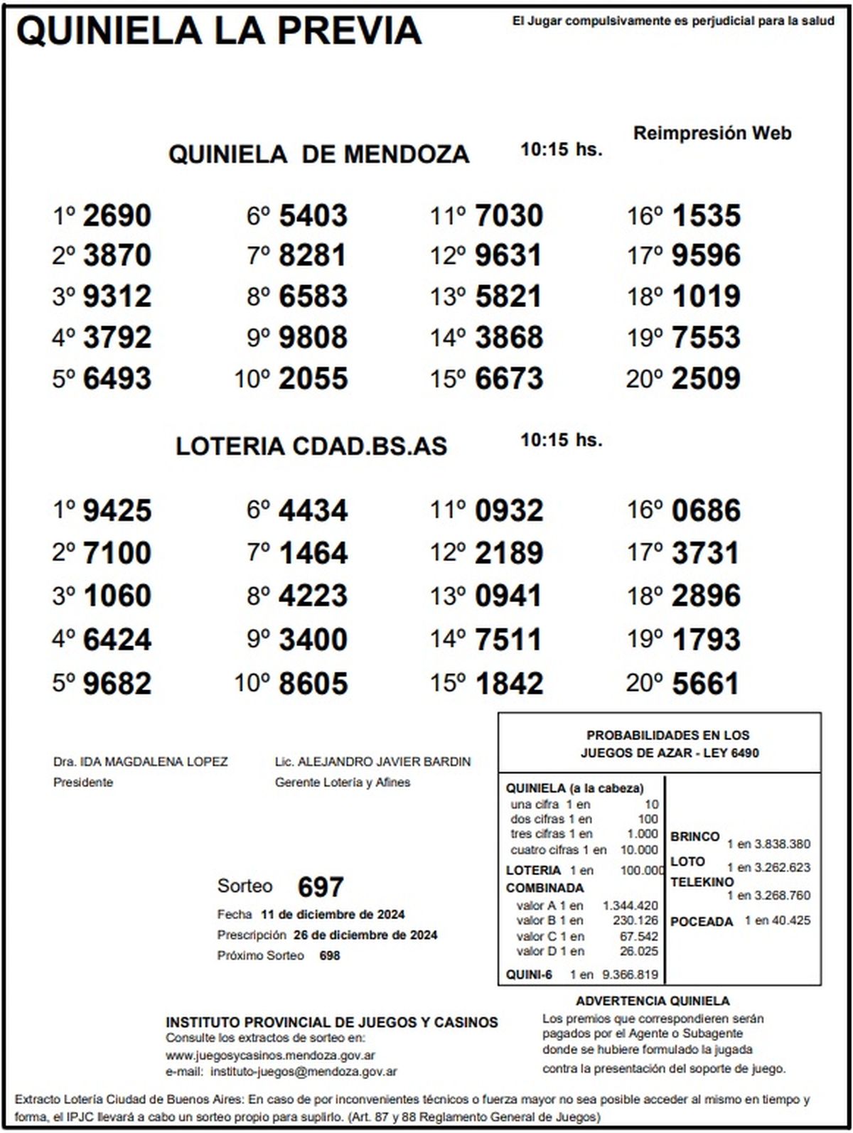 Resultados Quiniela de Mendoza: La Previa del 11 de diciembre de 2024
