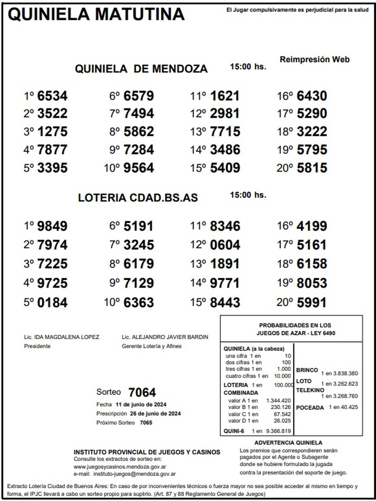 Resultados Quiniela de Mendoza: La Matutina del 11 de junio 2024