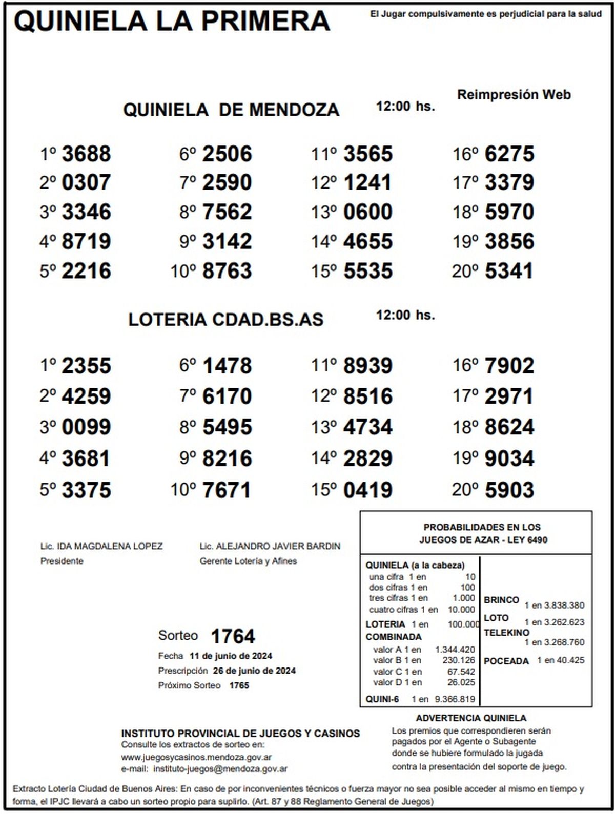 Resultados Quiniela de Mendoza: La Primera del 11 de junio 2024