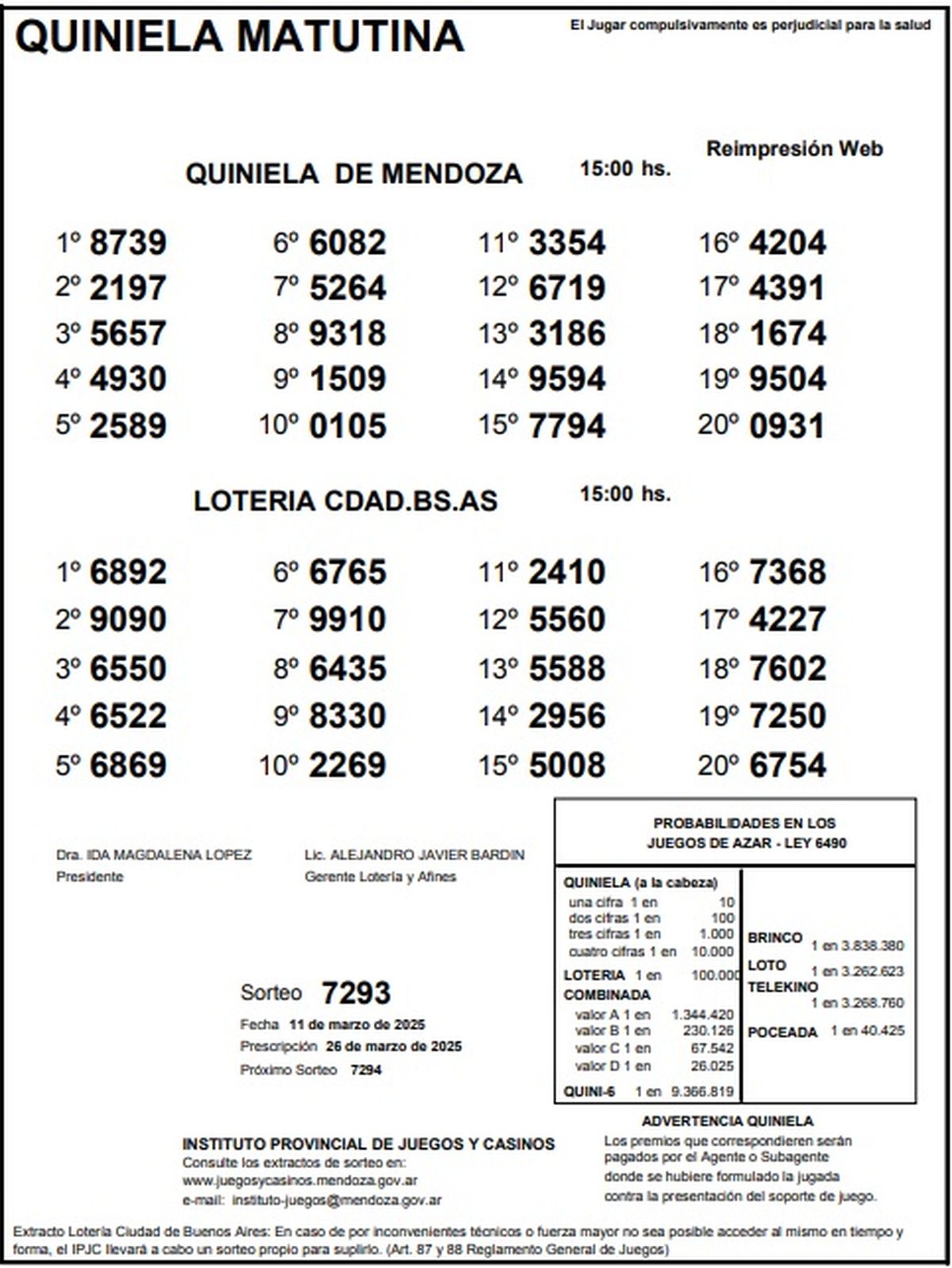 Resultados Quiniela de Mendoza: La Matutina del 11 de marzo de 2025